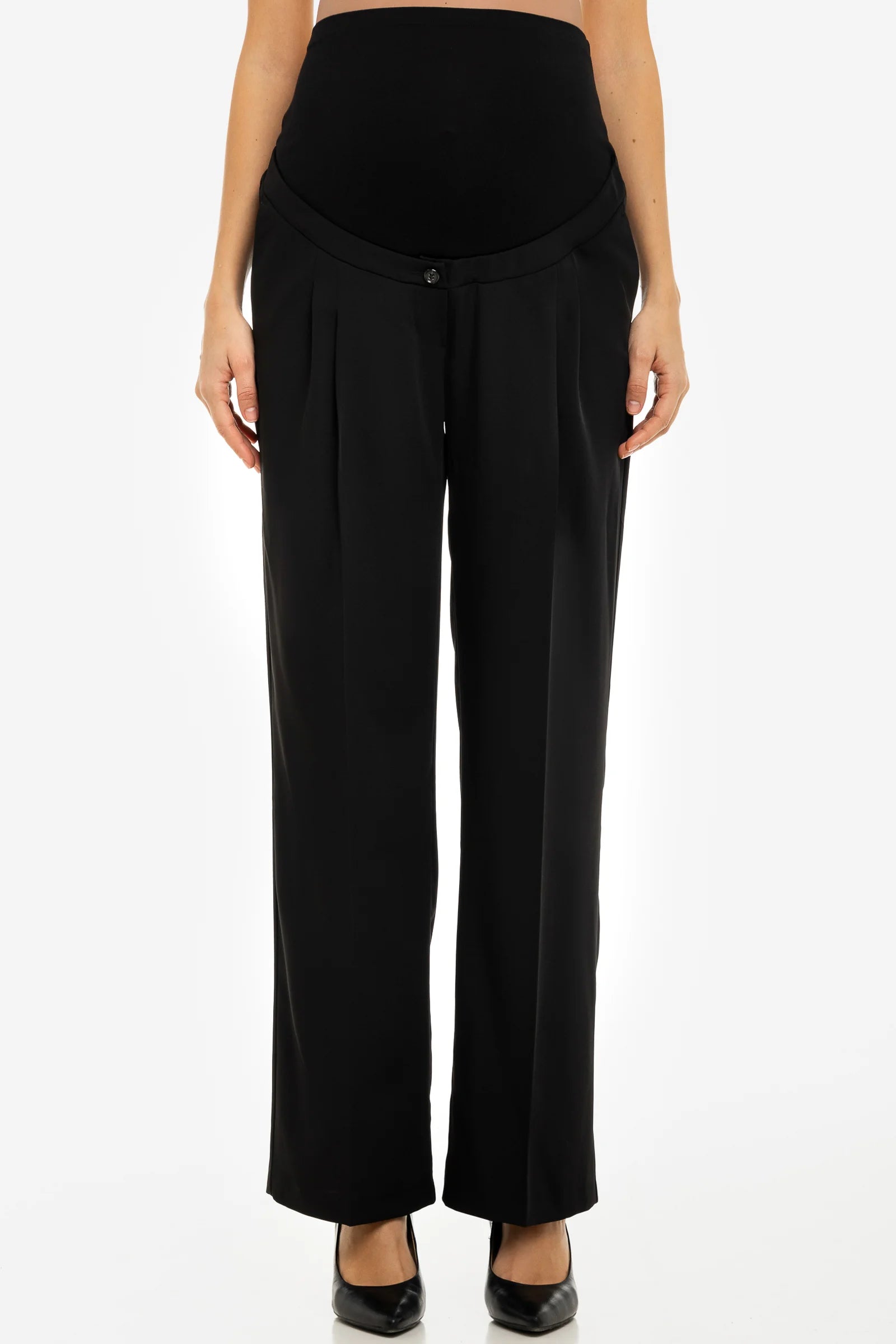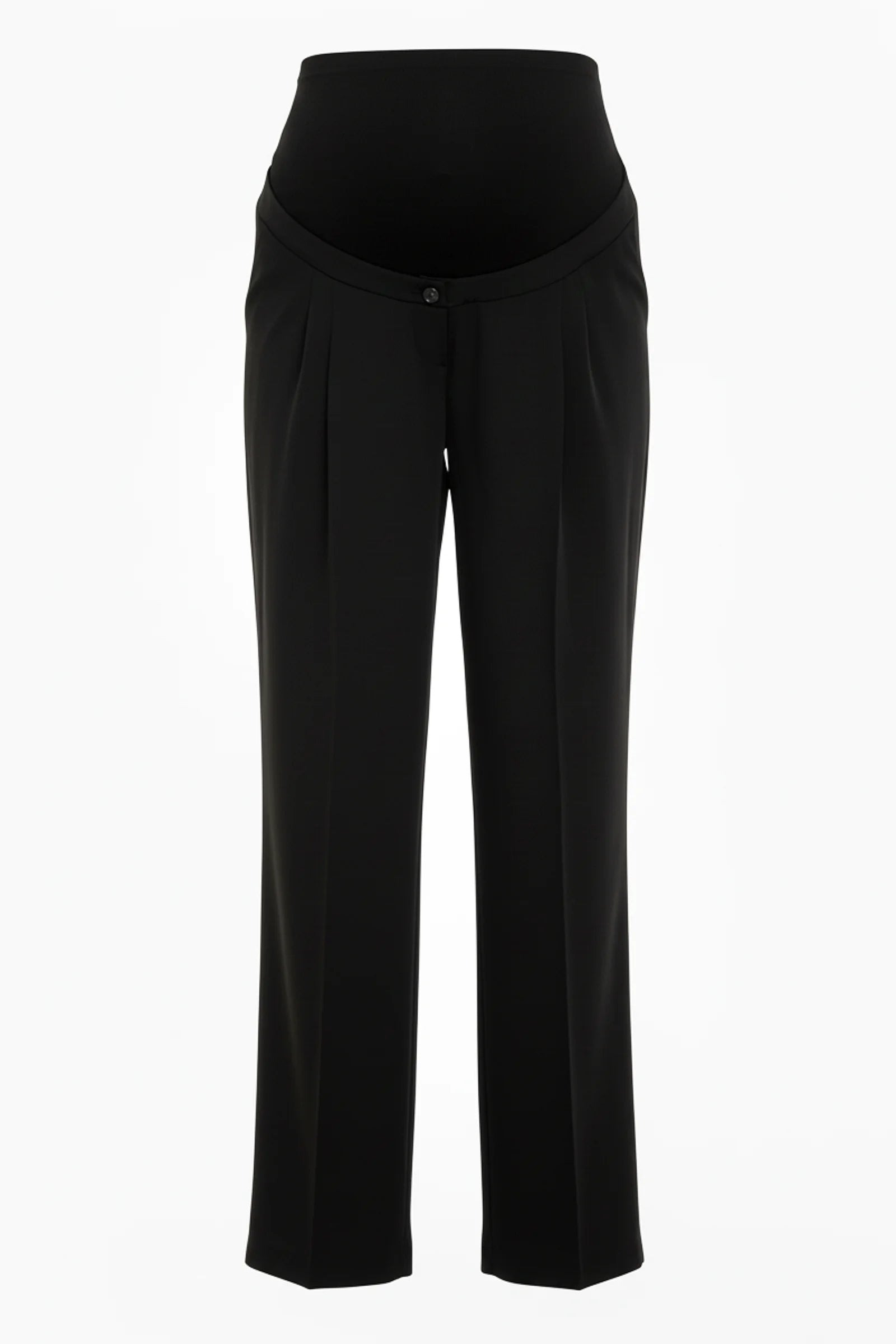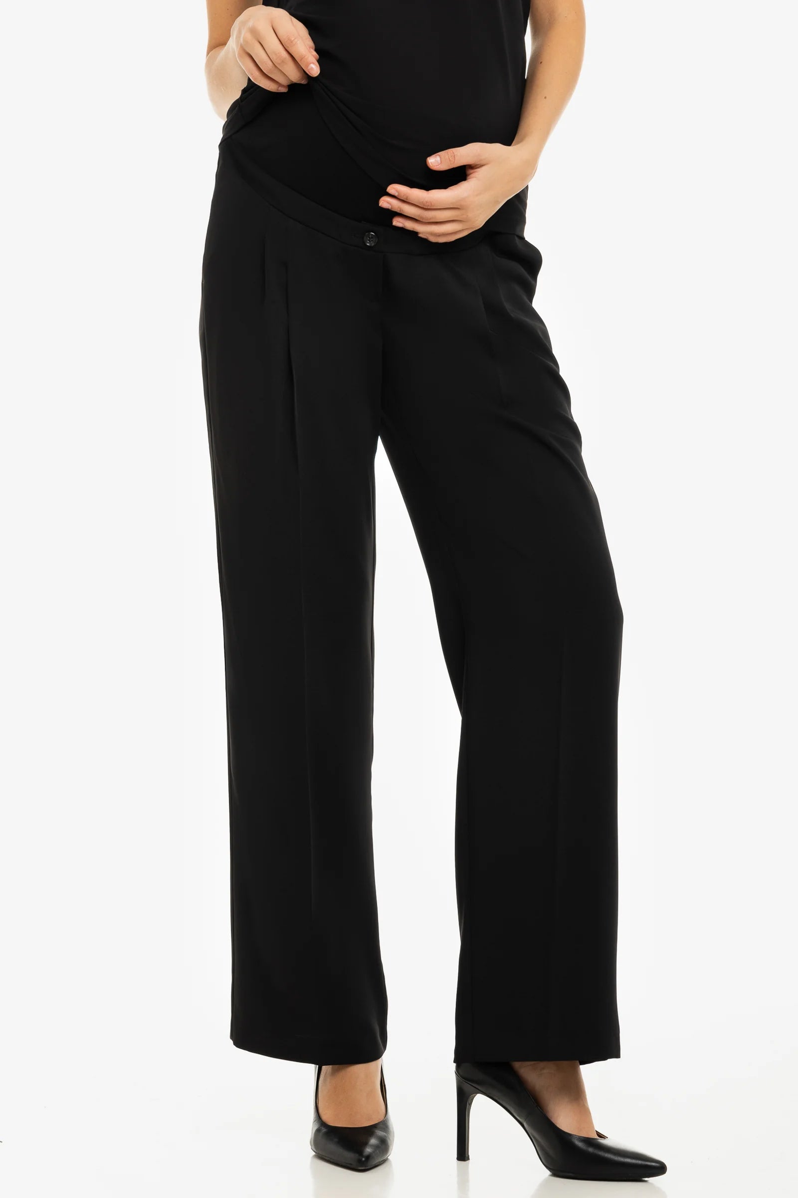 Crêpe wijde zwangerschapsbroek met plooien - zwart