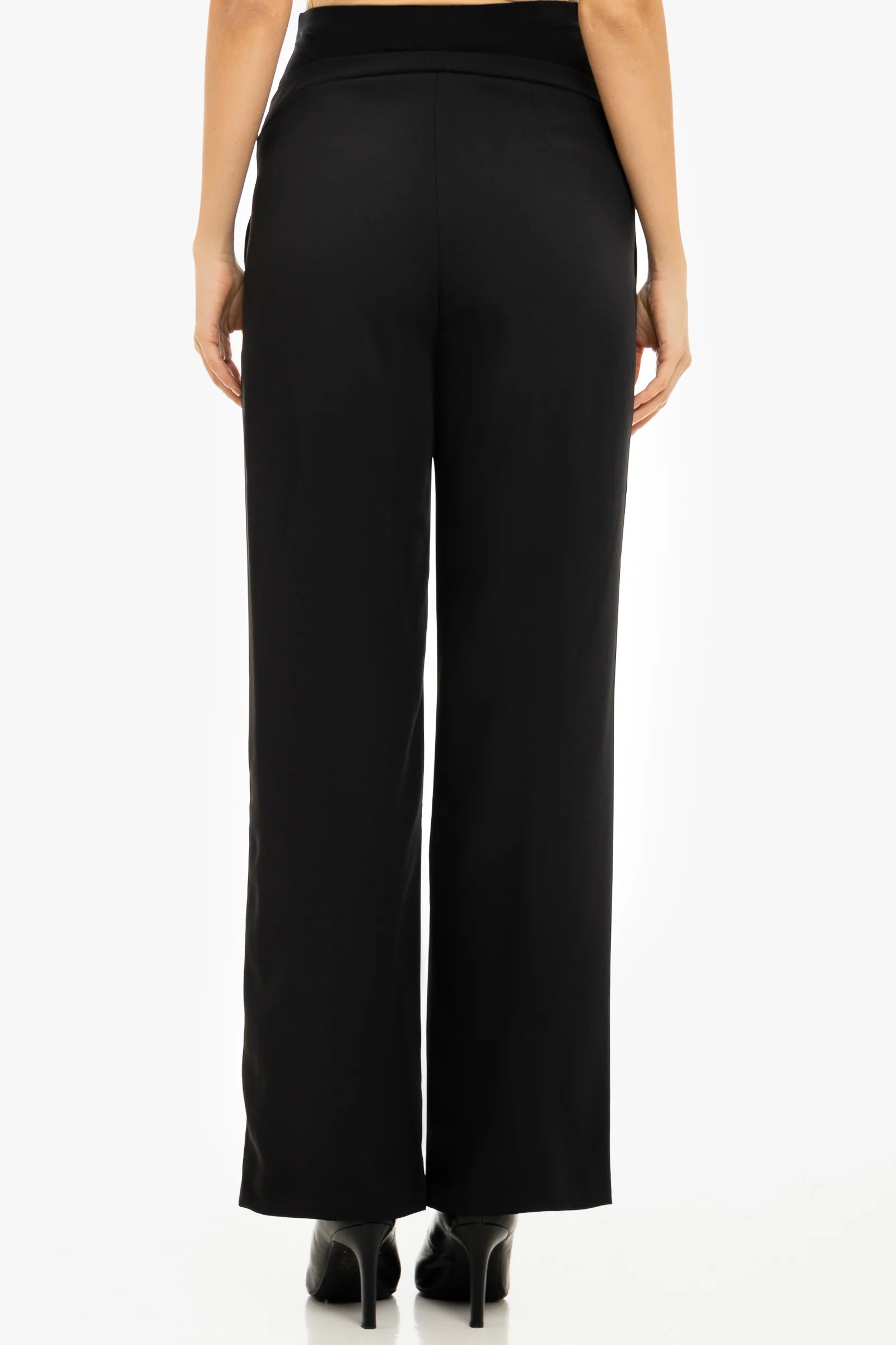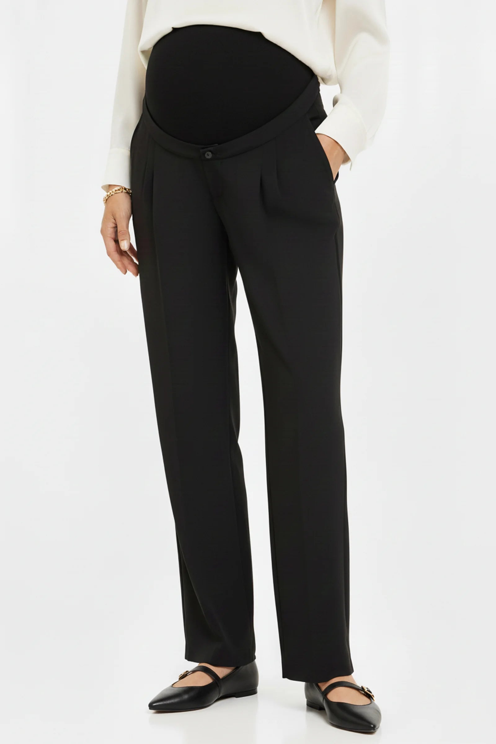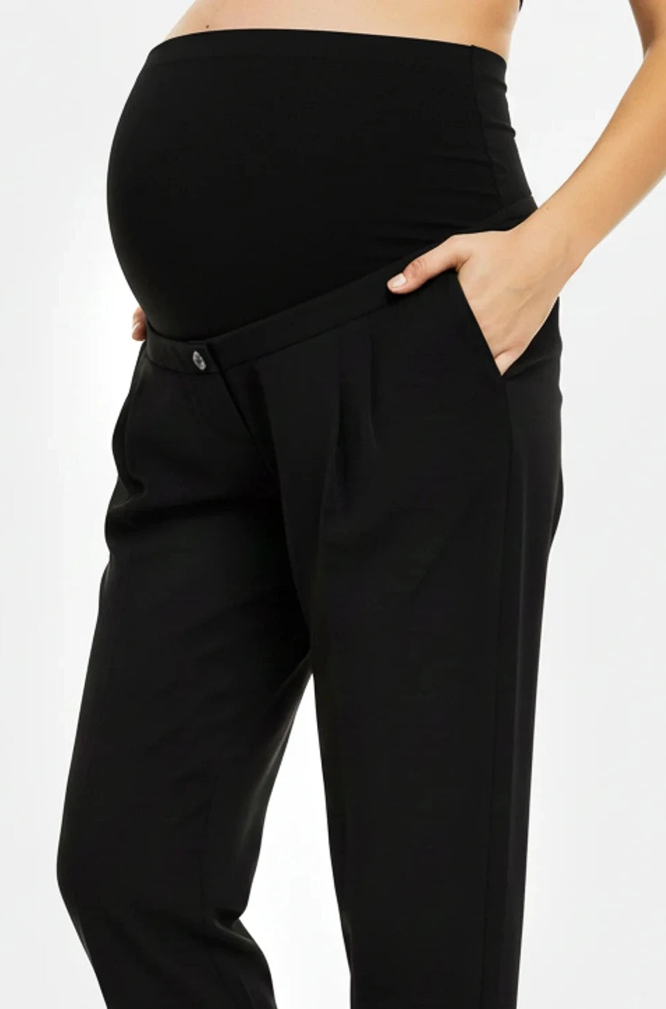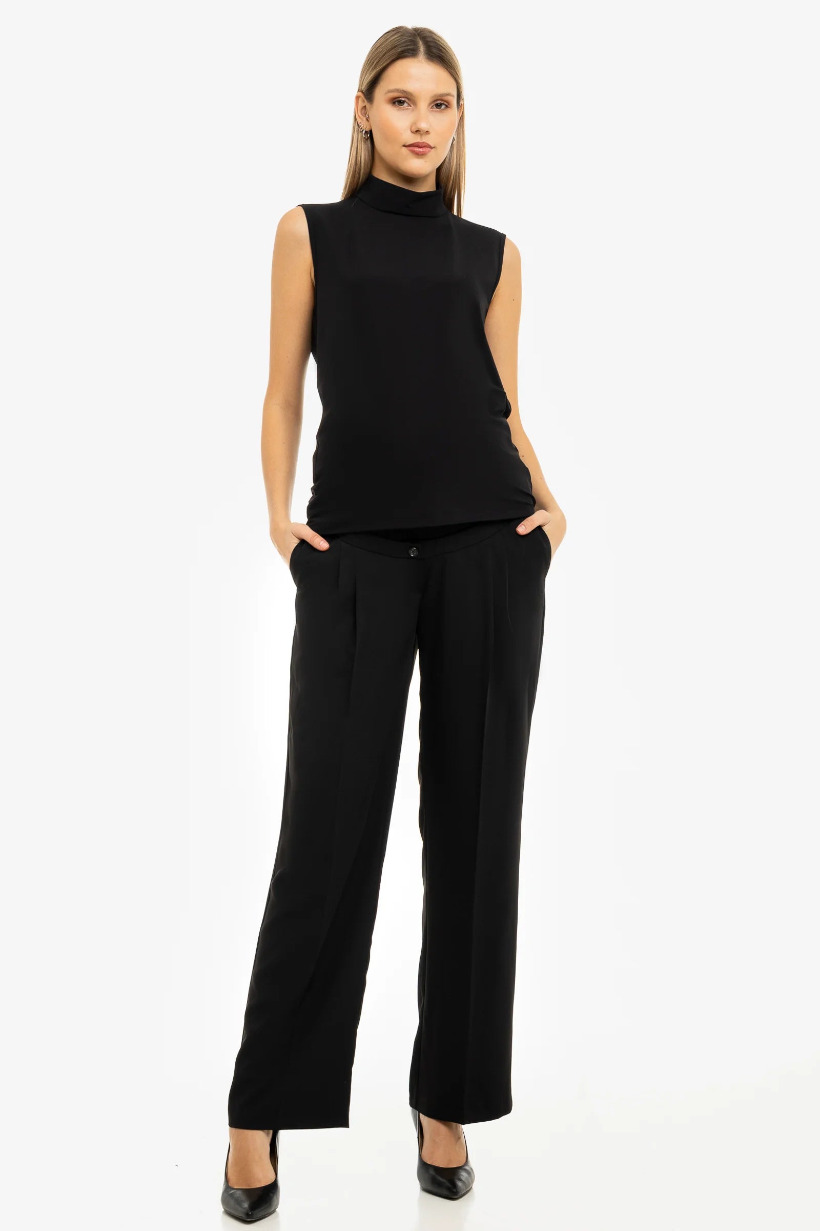 Crêpe wijde zwangerschapsbroek met plooien - zwart