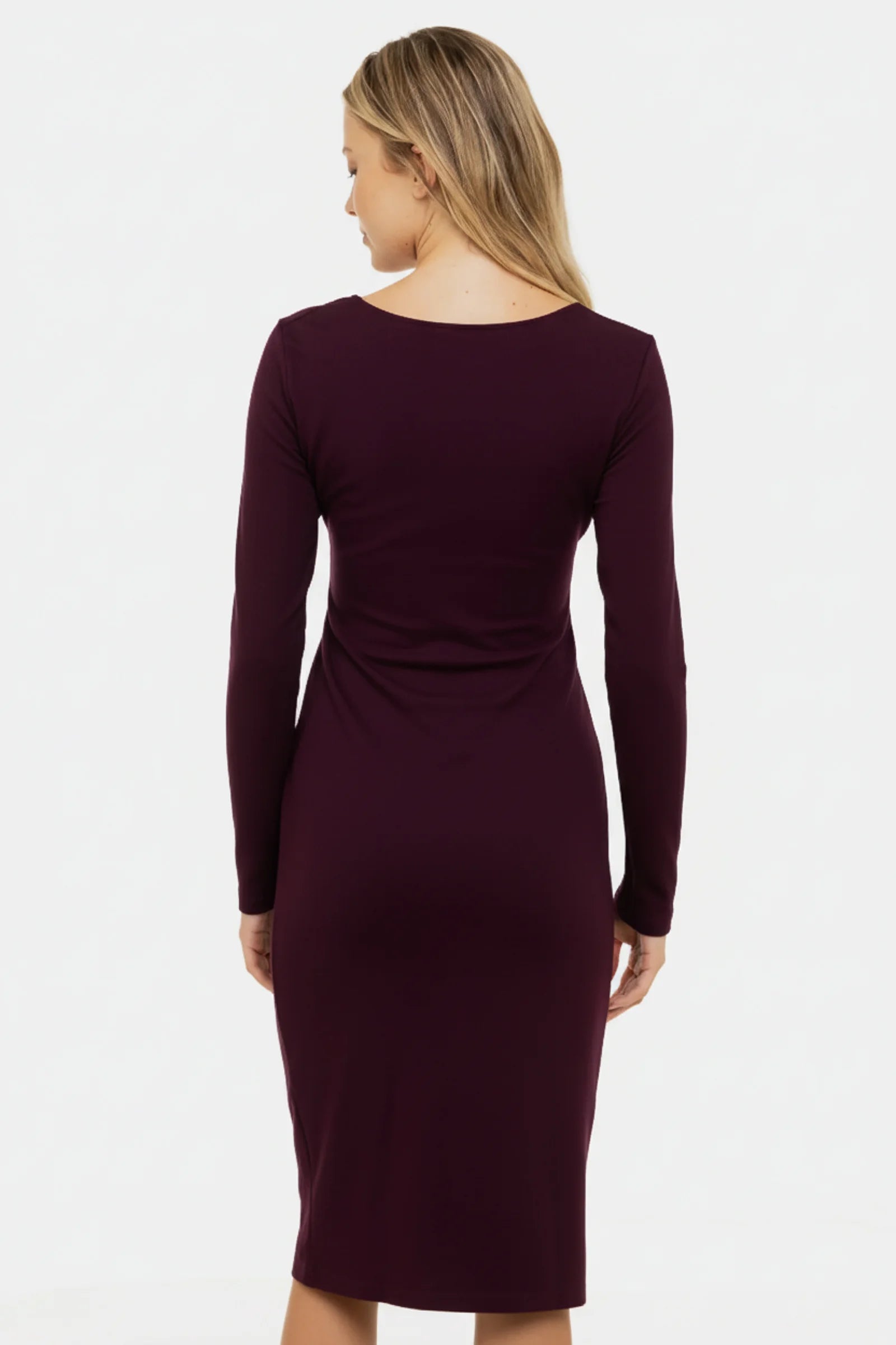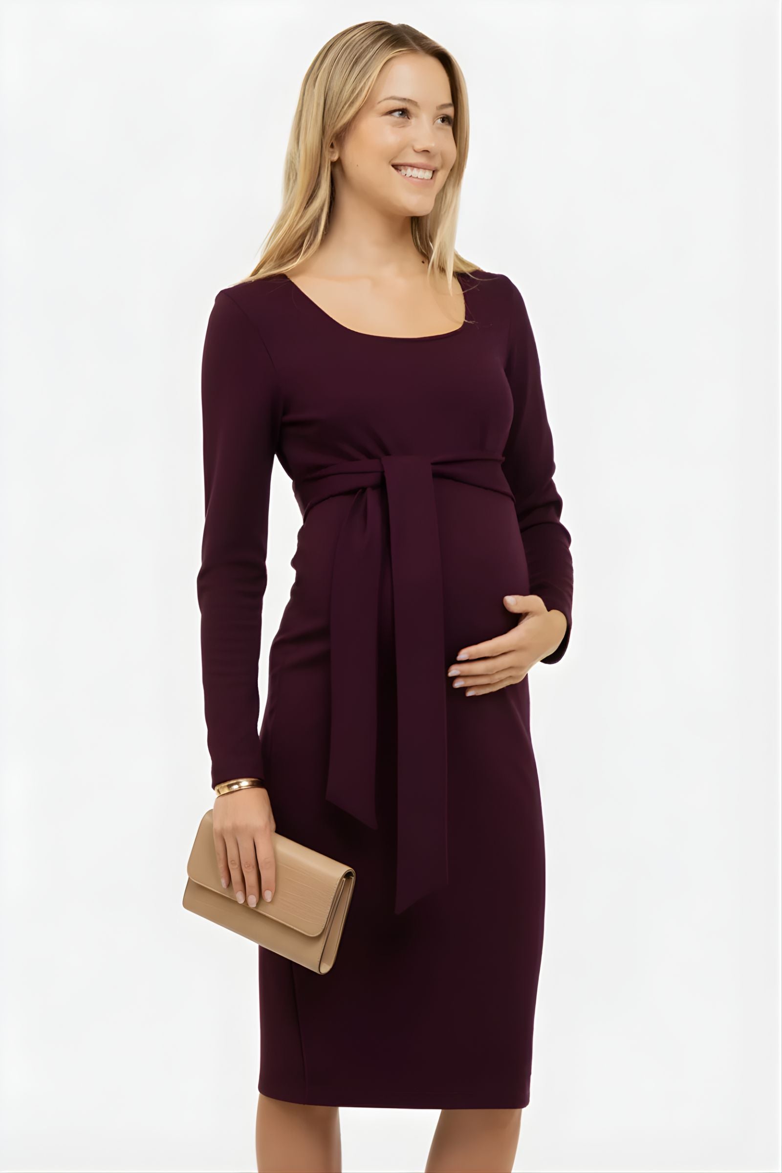 Elegante lange zwangerschapsjurk met brede riem - Bordeaux