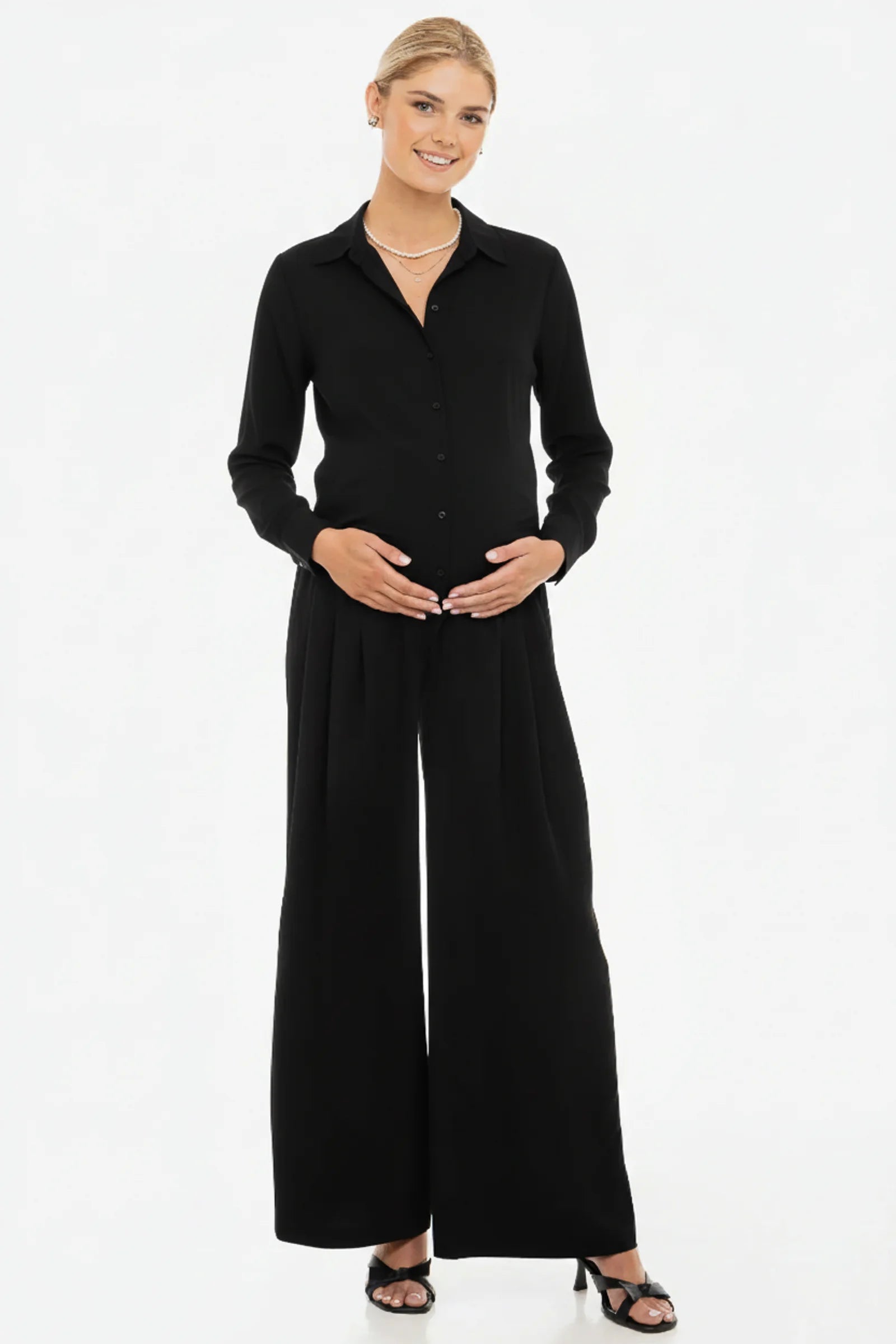 Elegante zwangerschapsbroek van crêpe georgette met fijne plooien - zwart