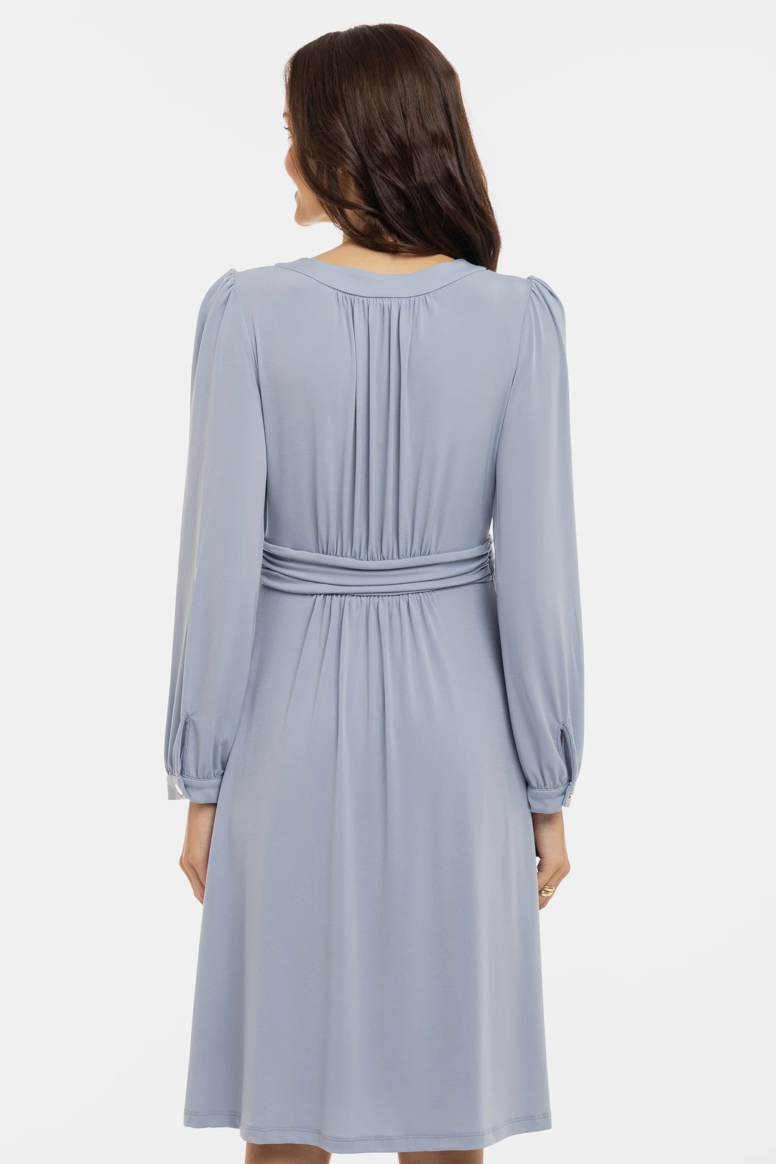 Elegante zwangerschapsjurk met geplooide details - poederblauw