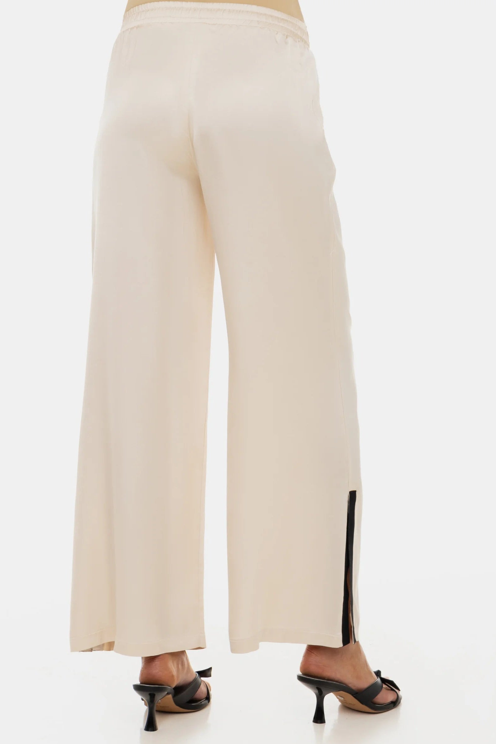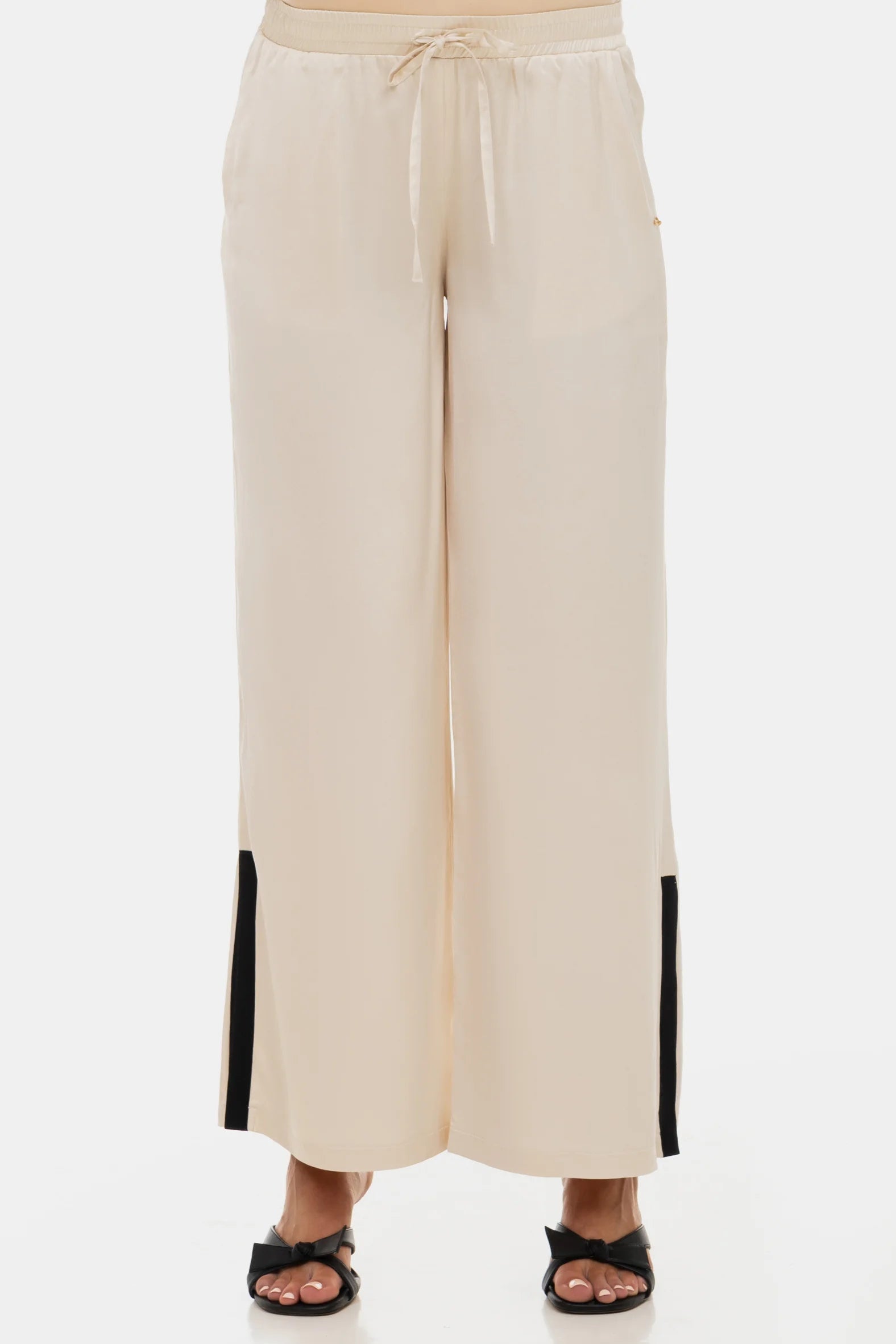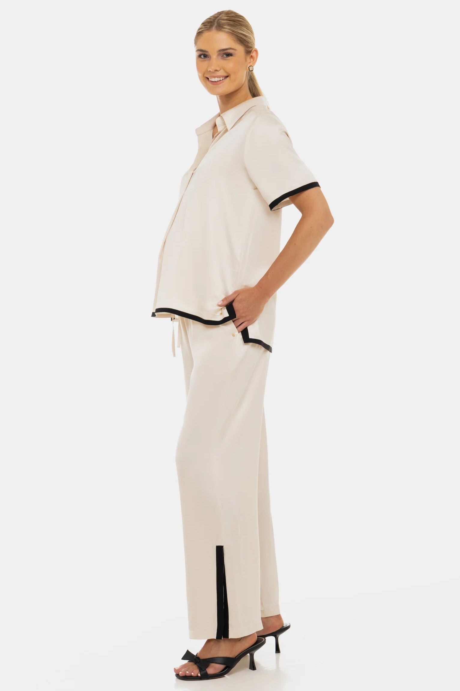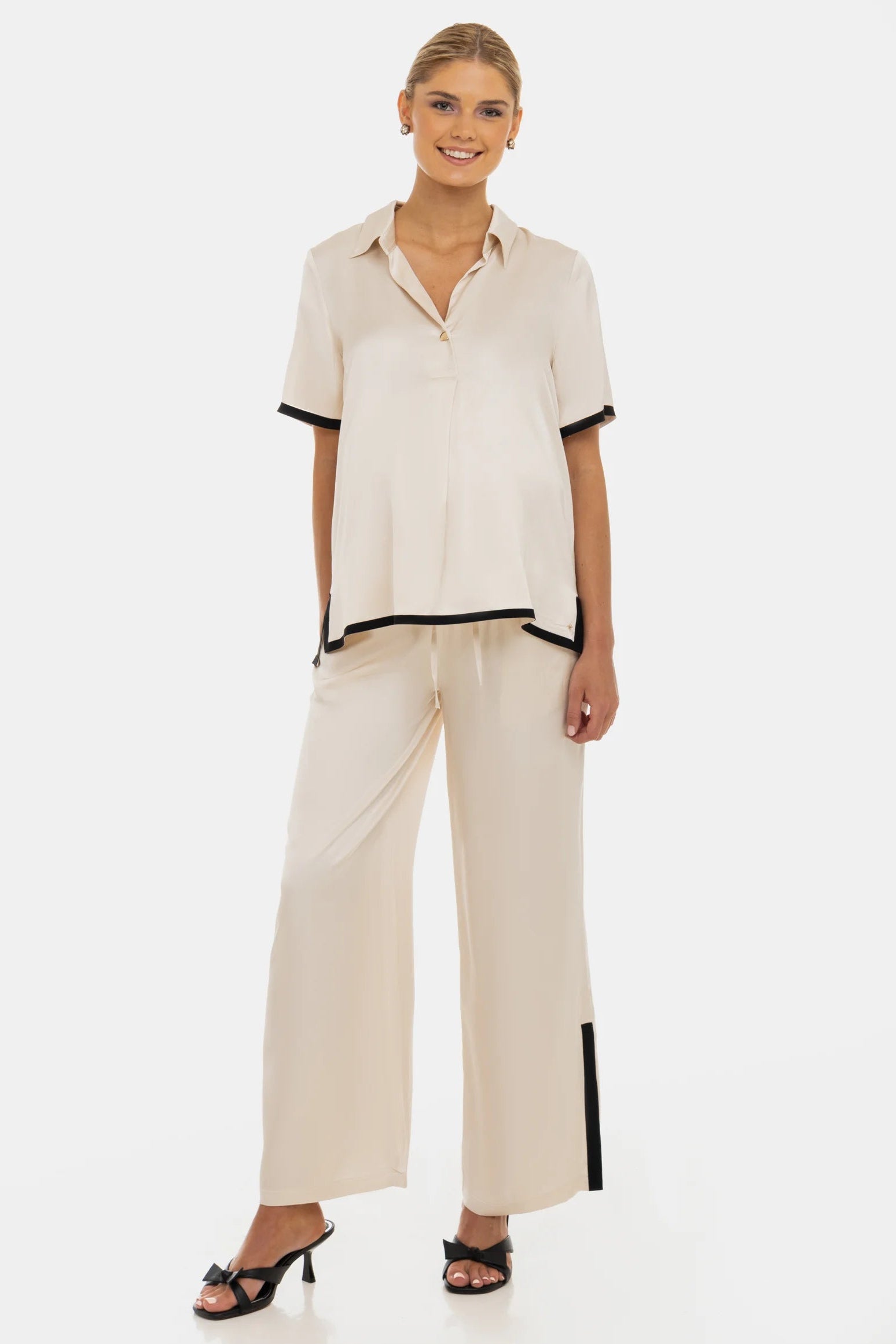 Satijnen zwangerschaps- en voedingsblouse met contrastbiezen