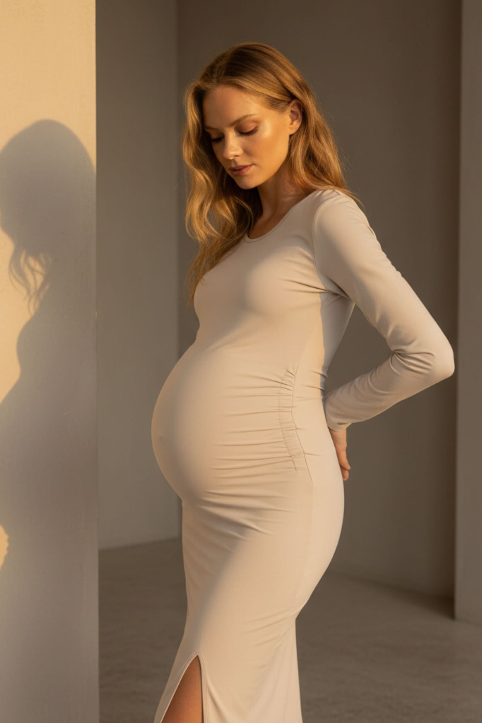 Lange zwangerschapsjurk met split - sand