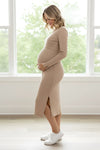 Lange rib zwangerschaps- en voedingsjurk met lange mouwen - khaki