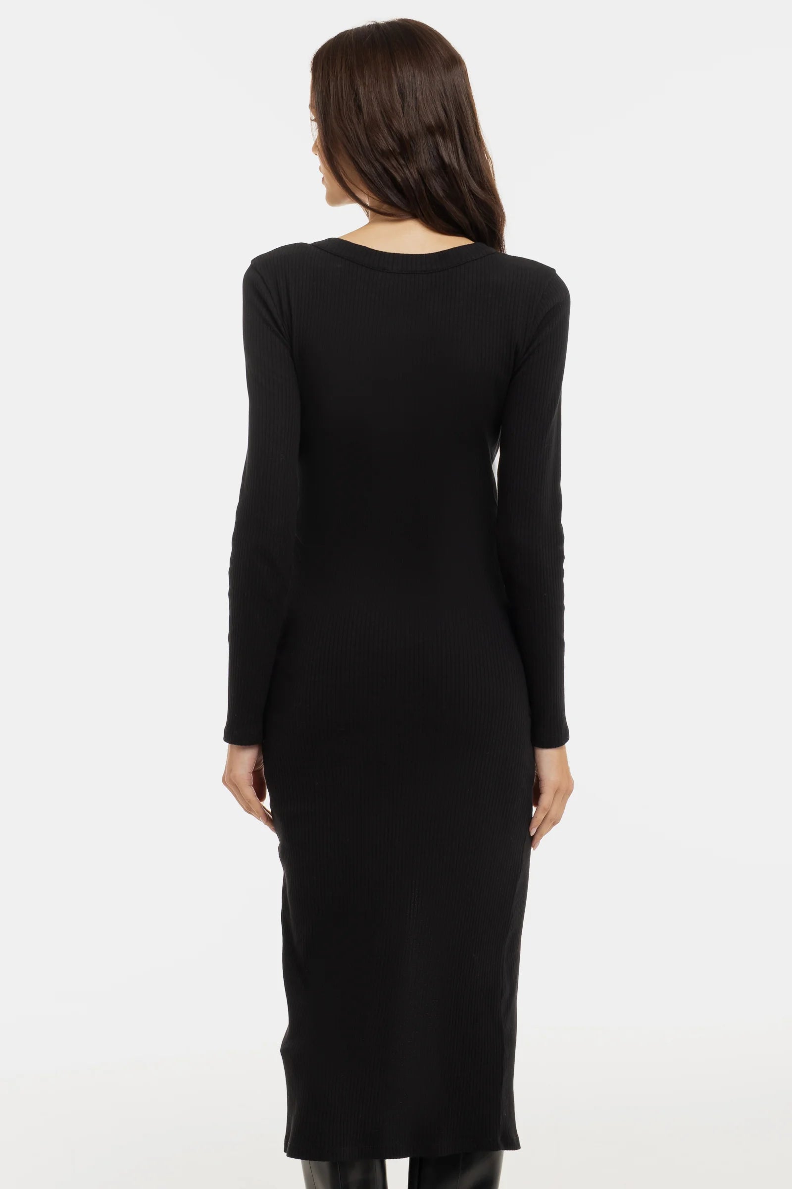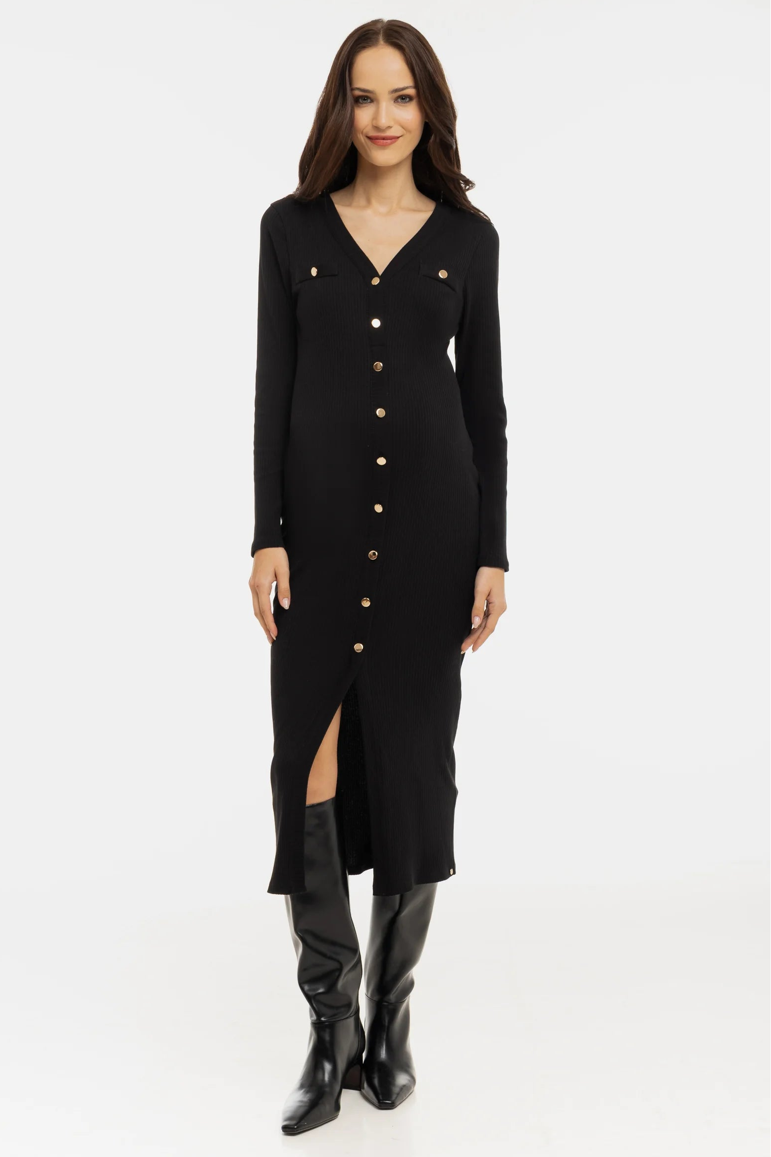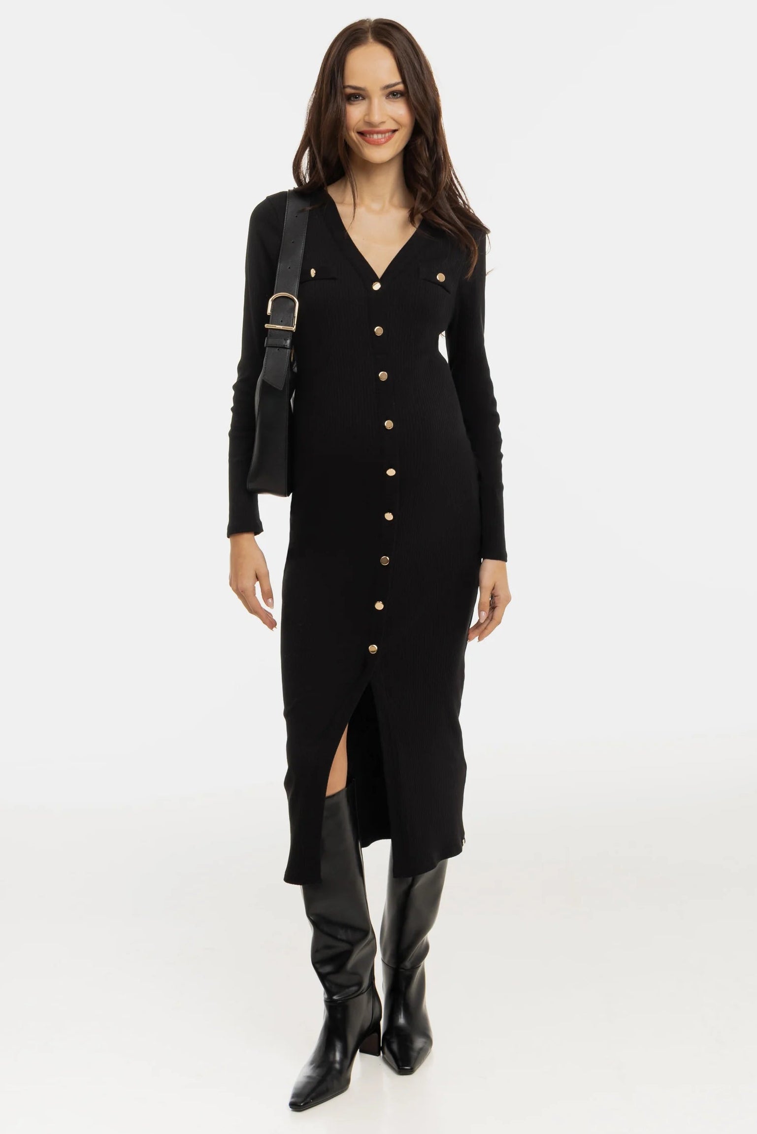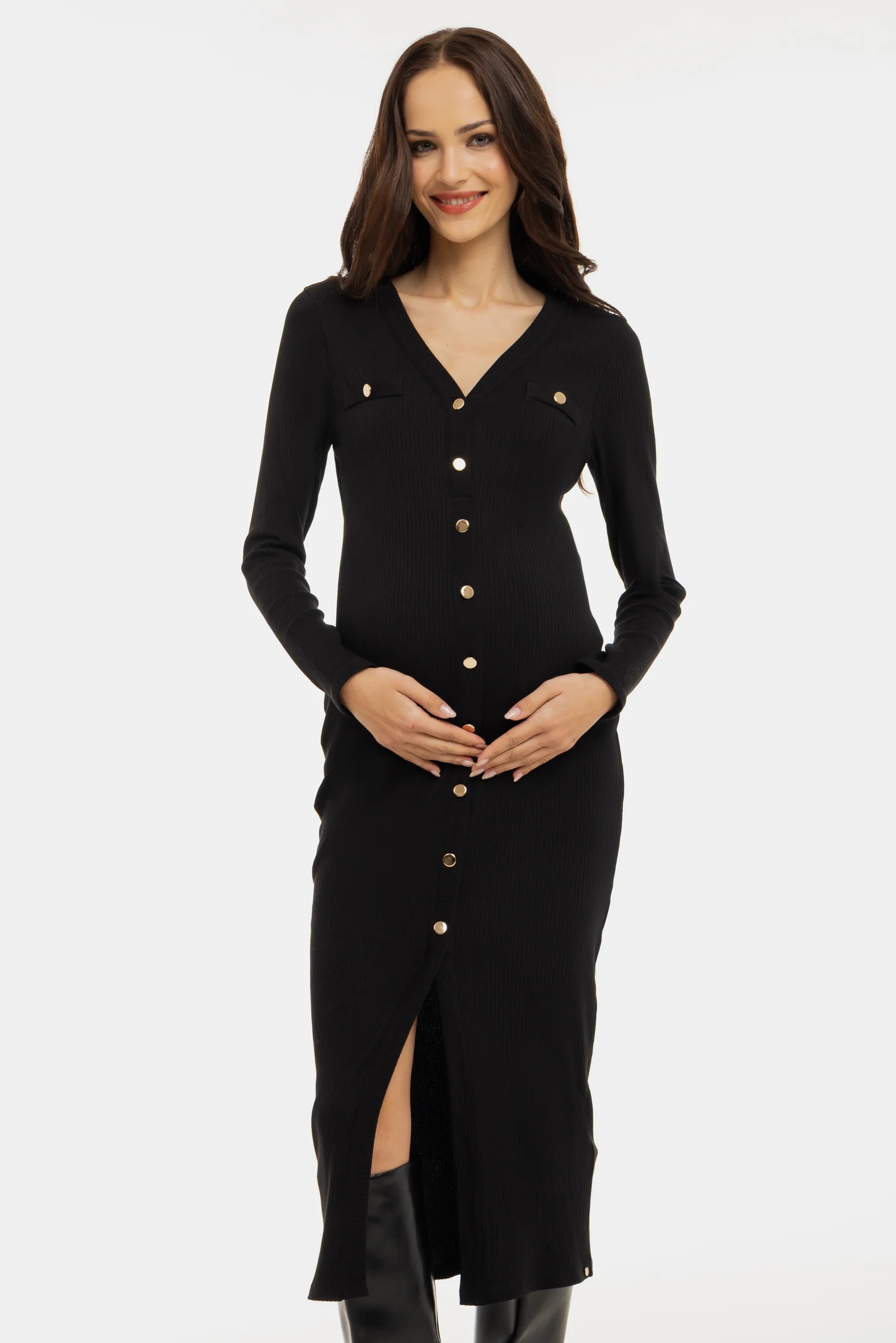 Zwangerschaps- en voedingsjurk met gouden knopen - zwart