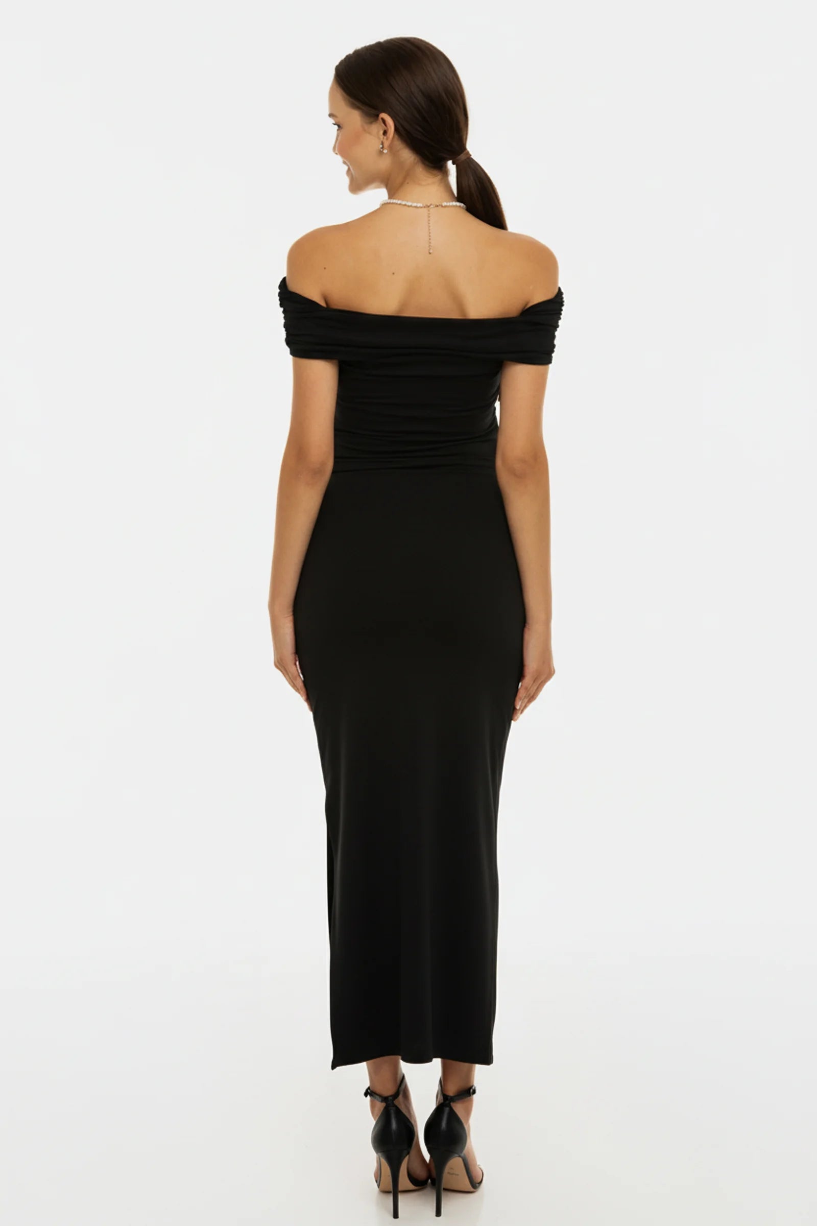 Feestelijke zwangerschapsjurk met plooien – zwart
