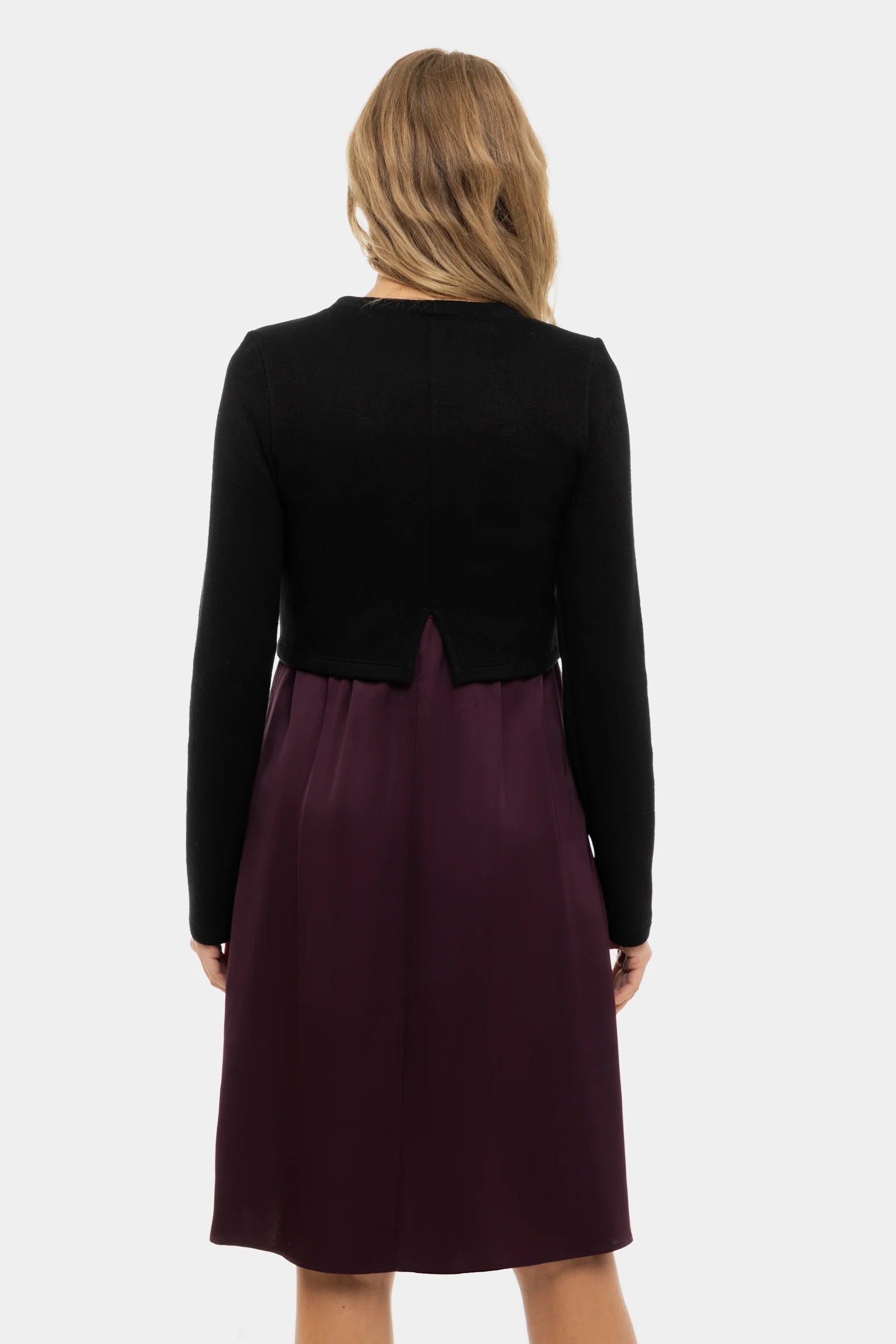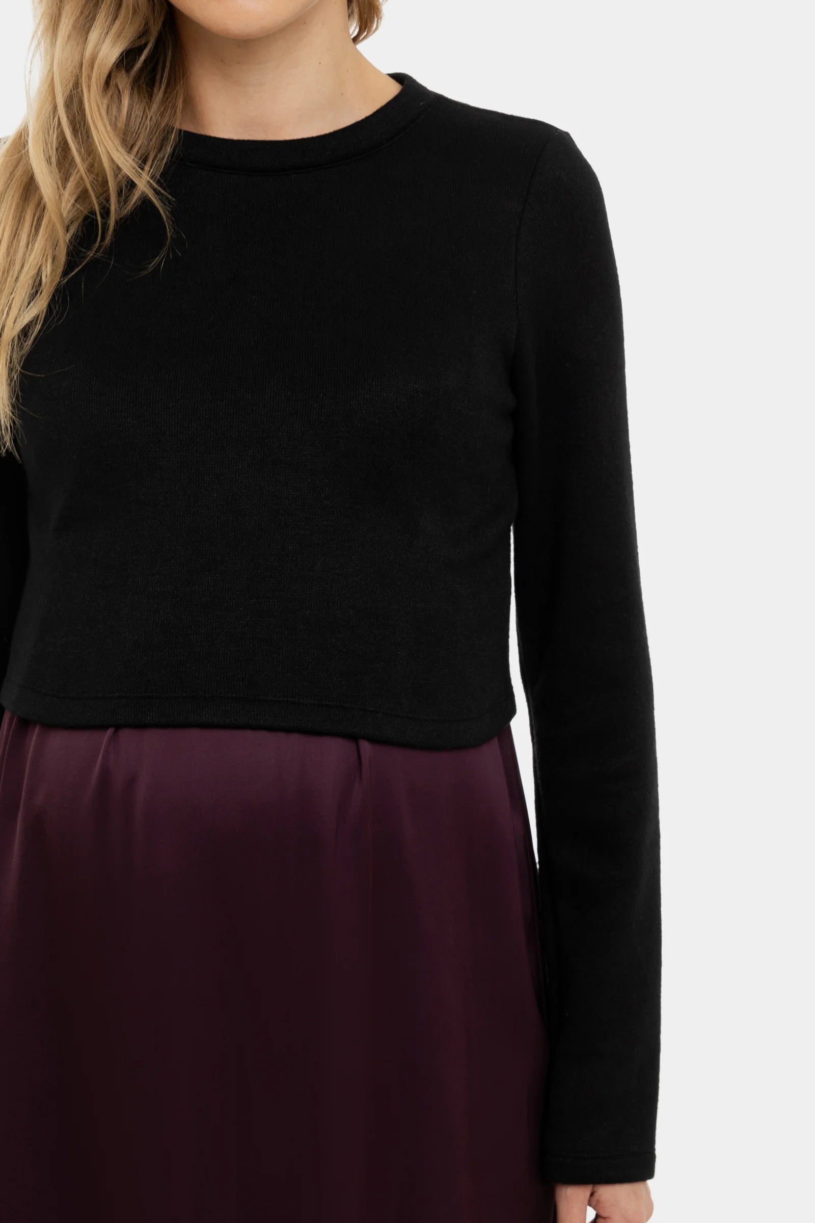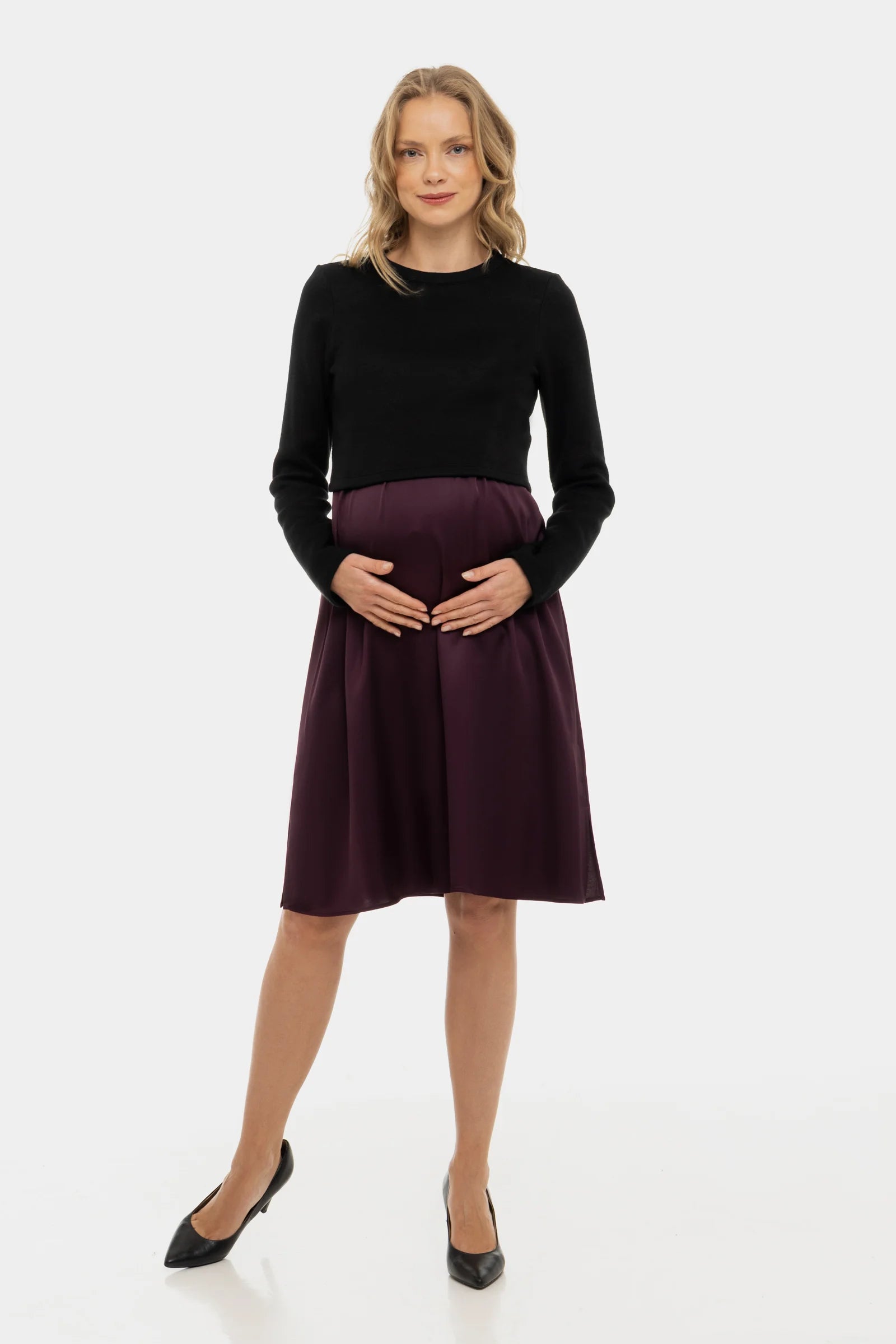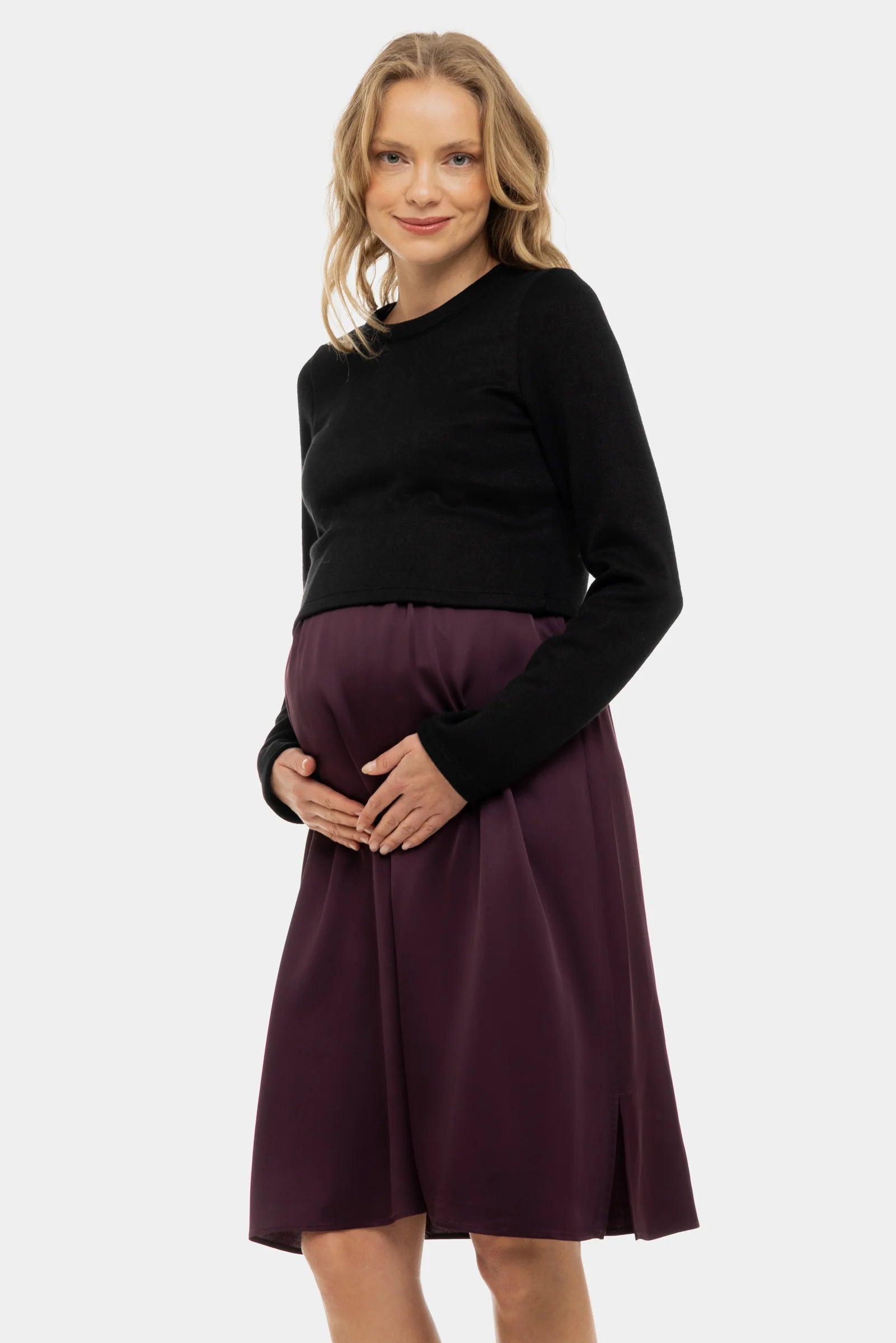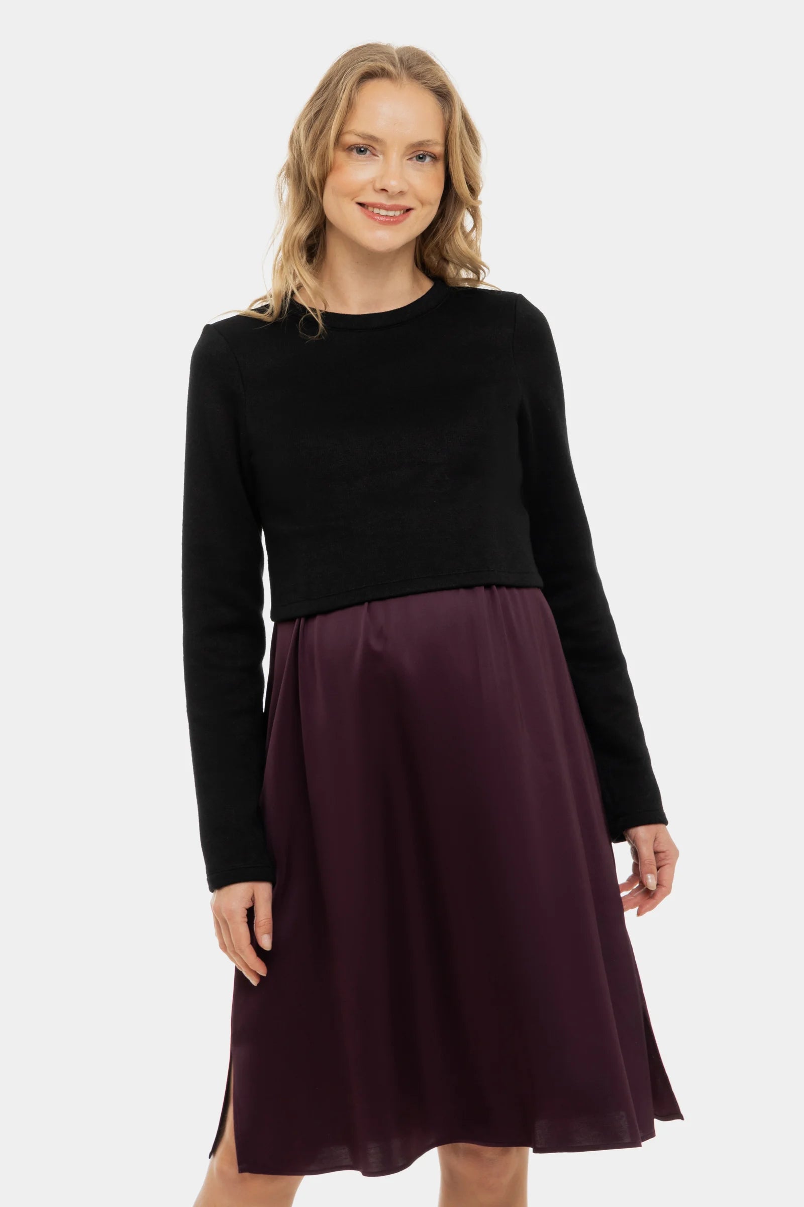 Satijnen zwangerschapsjurk- en voedingsjurk met trui – bordeaux