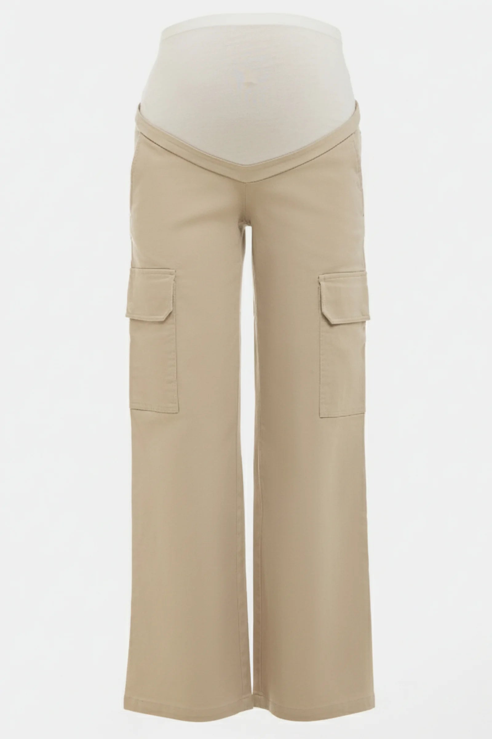 Wijde katoenen cargo zwangerschapsbroek - sand