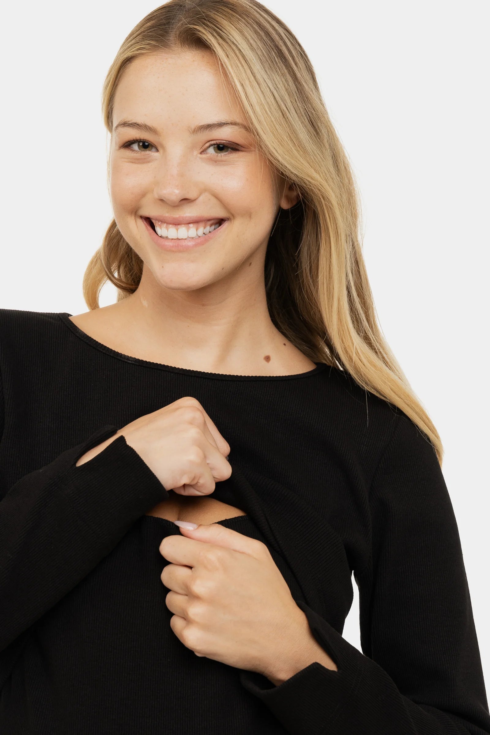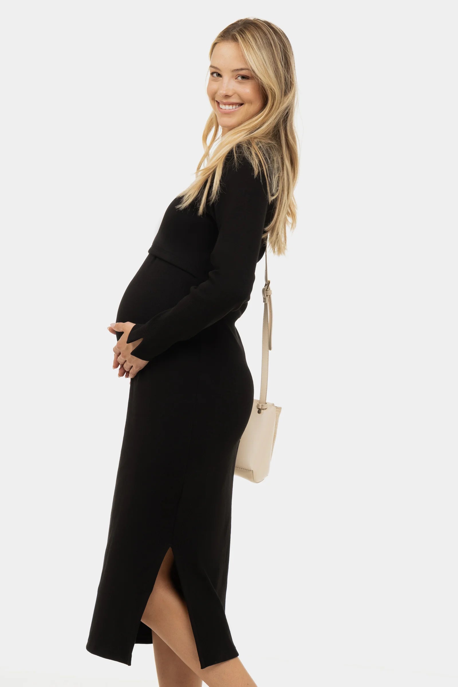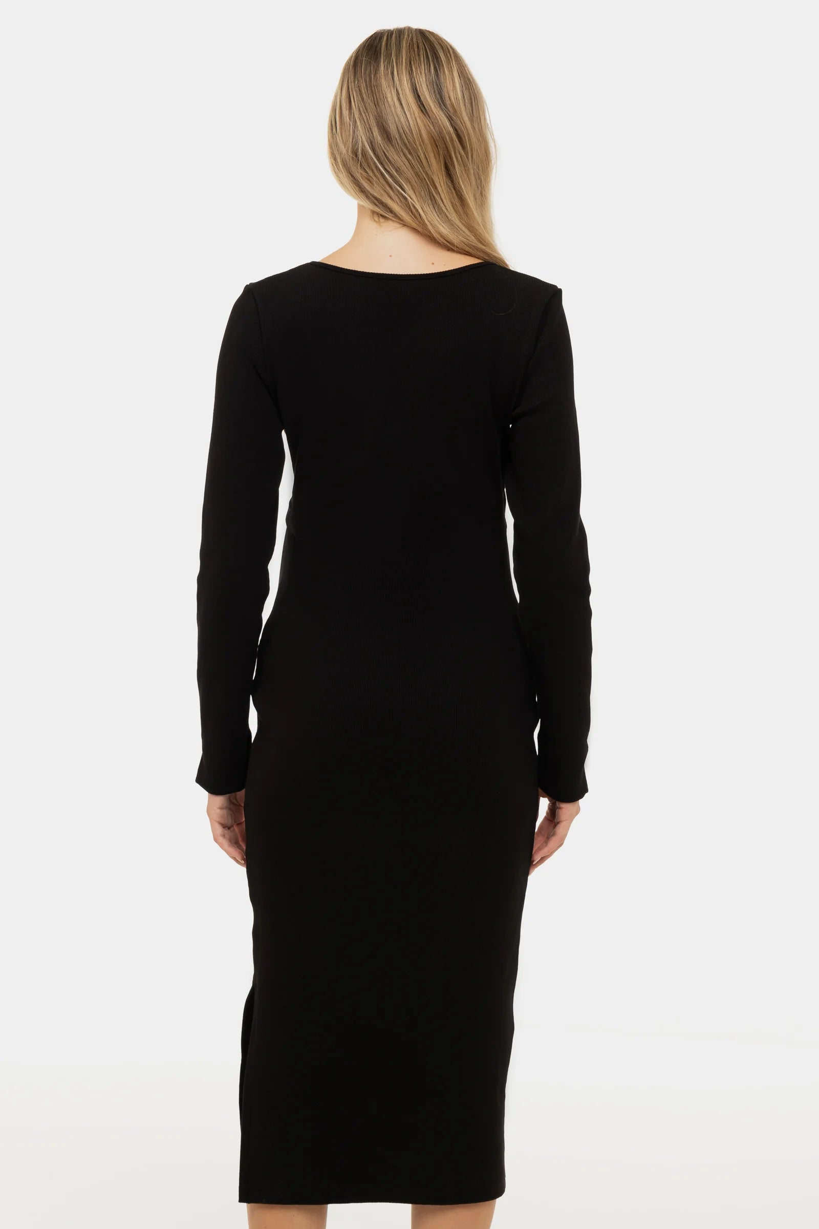 Lange rib zwangerschaps- en voedingsjurk met lange mouwen - zwart