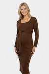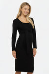 Elegante lange zwangerschapsjurk met brede riem - navy