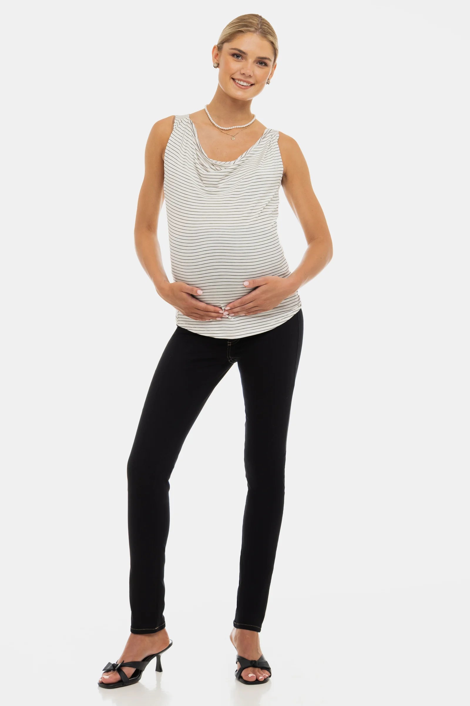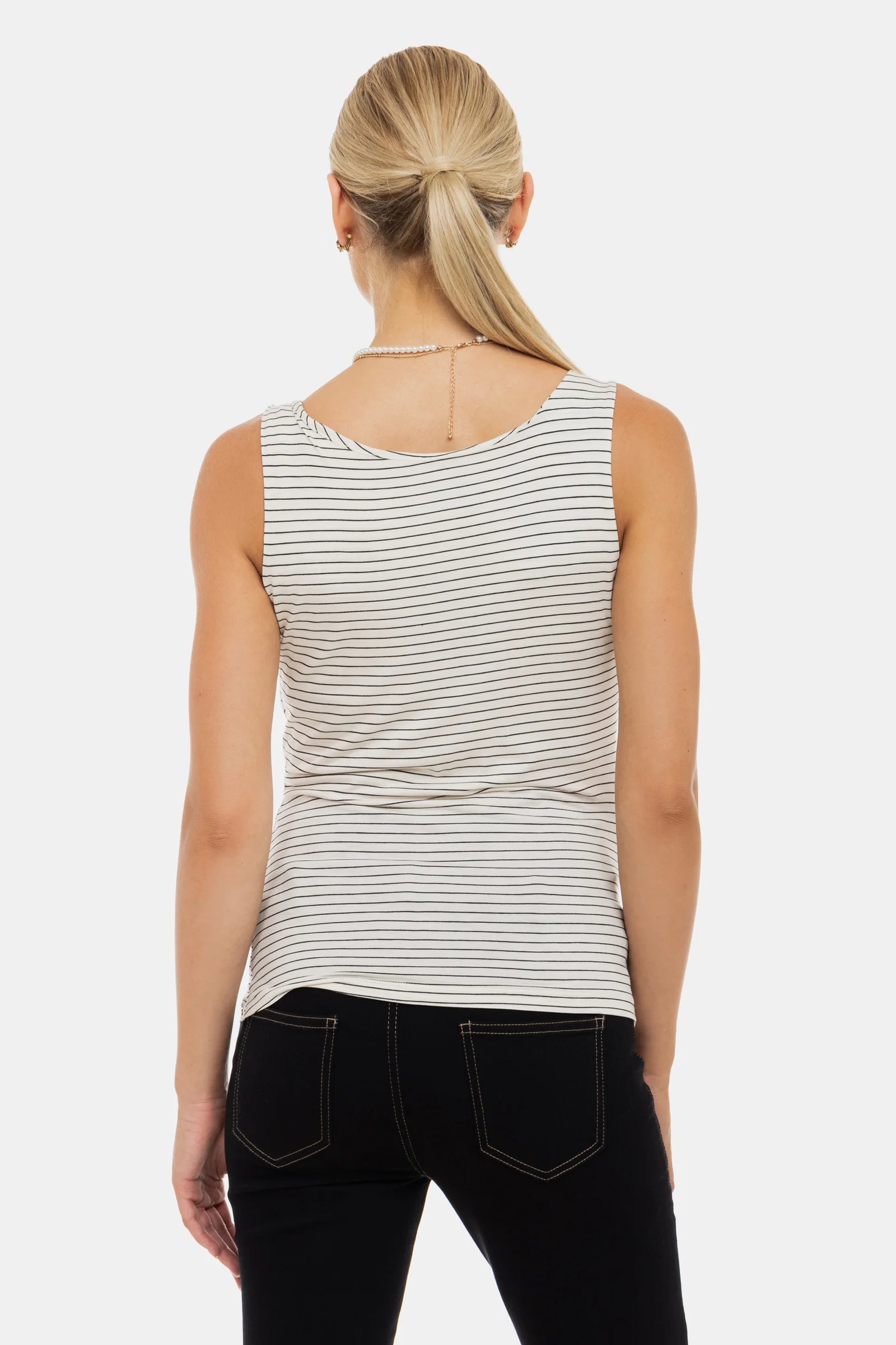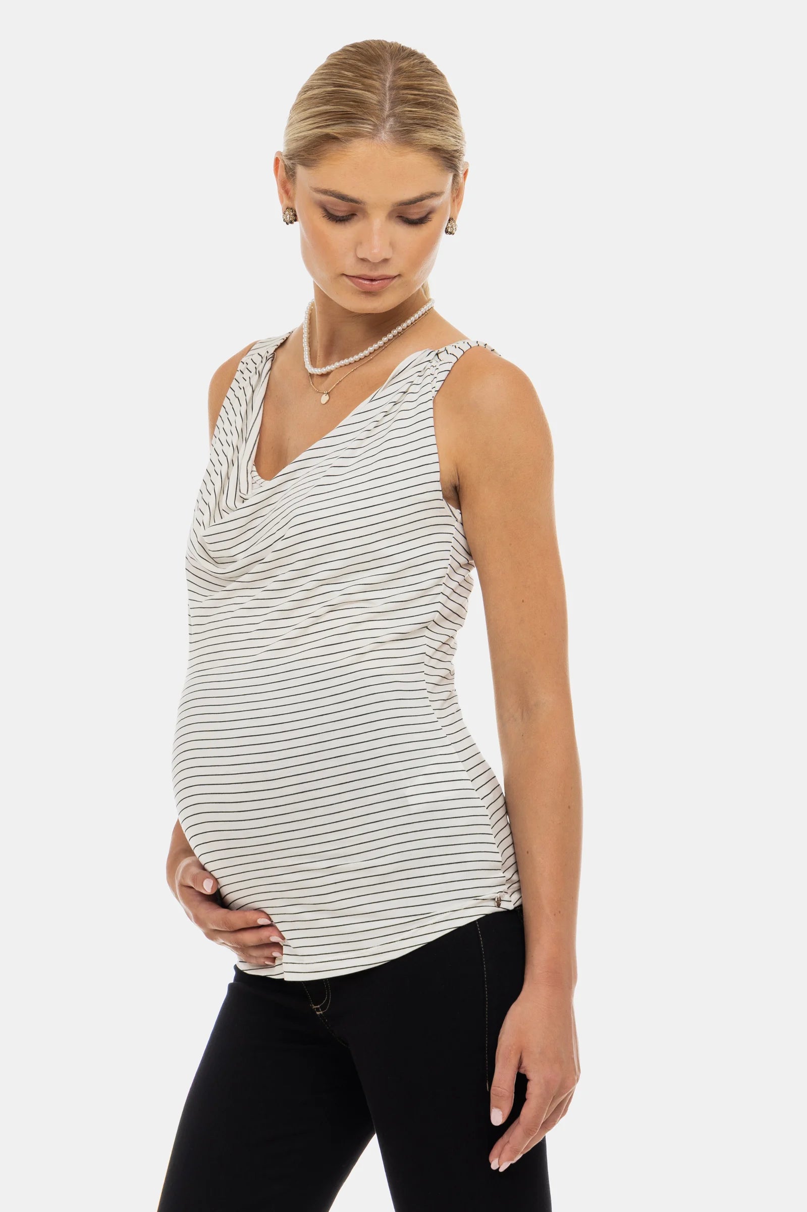 Gestreepte zwangerschaps- en voedingstop met drapé halslijn