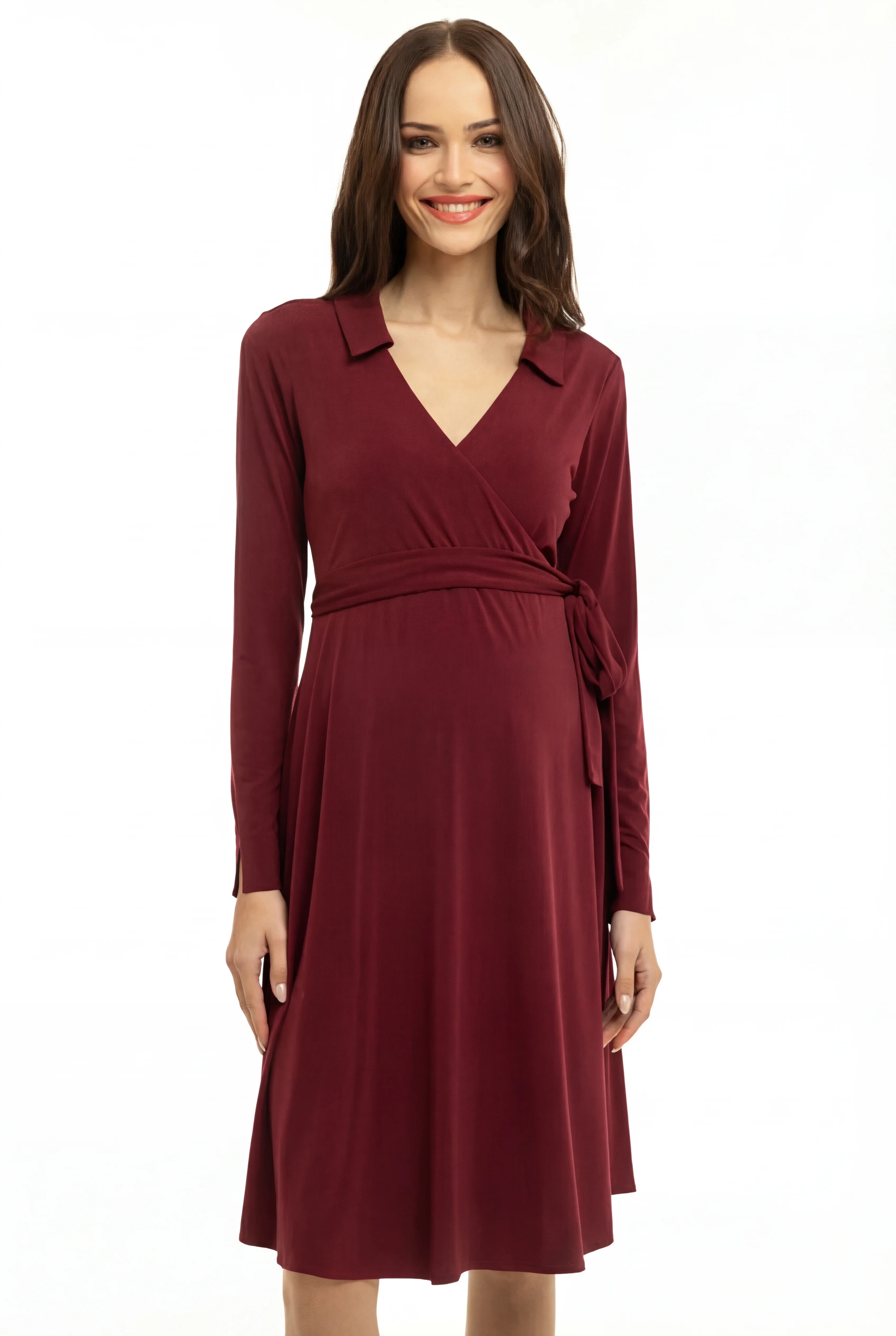 Luchtige zwangerschaps- en voedingsjurk met overslag - Kers