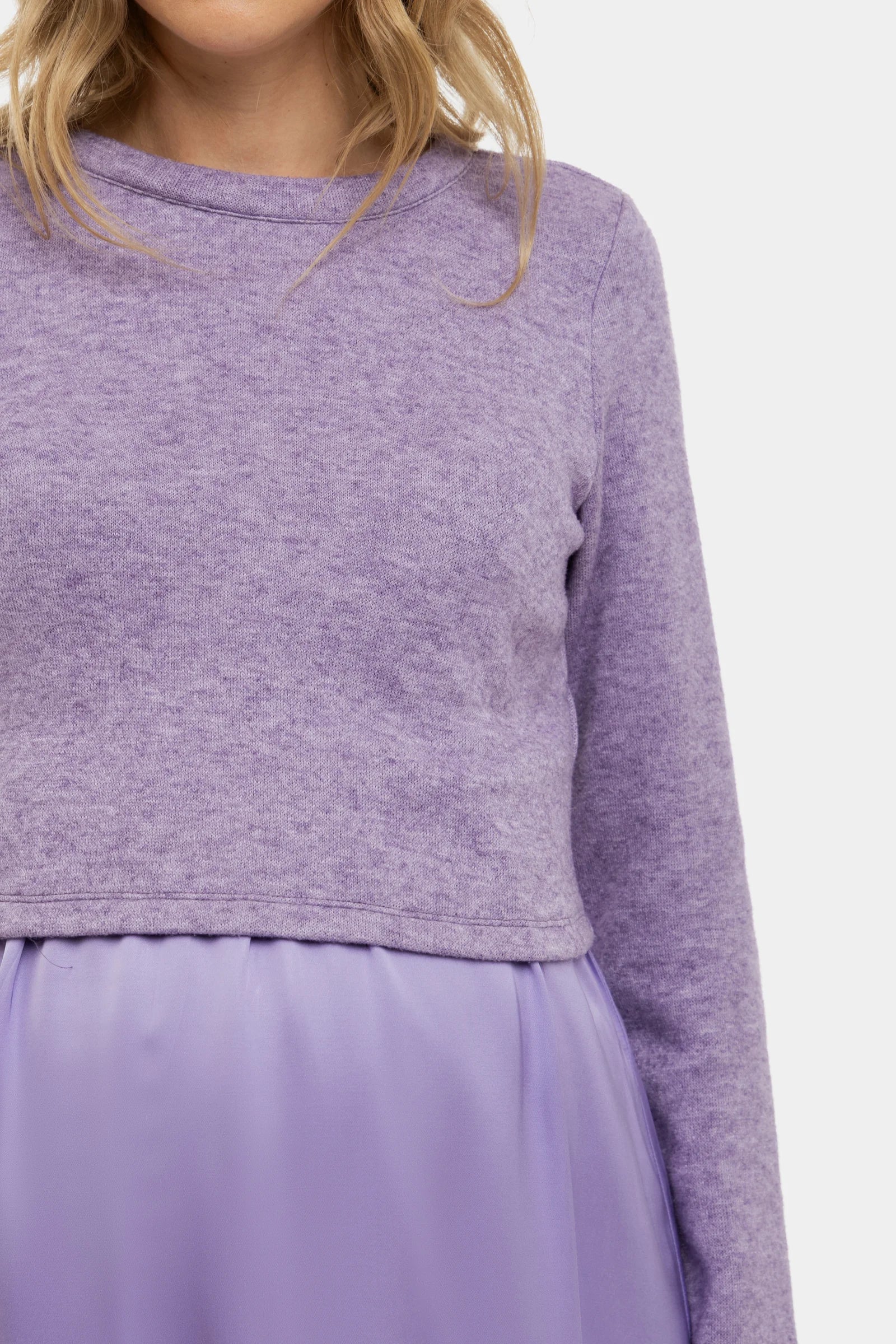 Satijnen zwangerschapsjurk- en voedingsjurk met trui – lila
